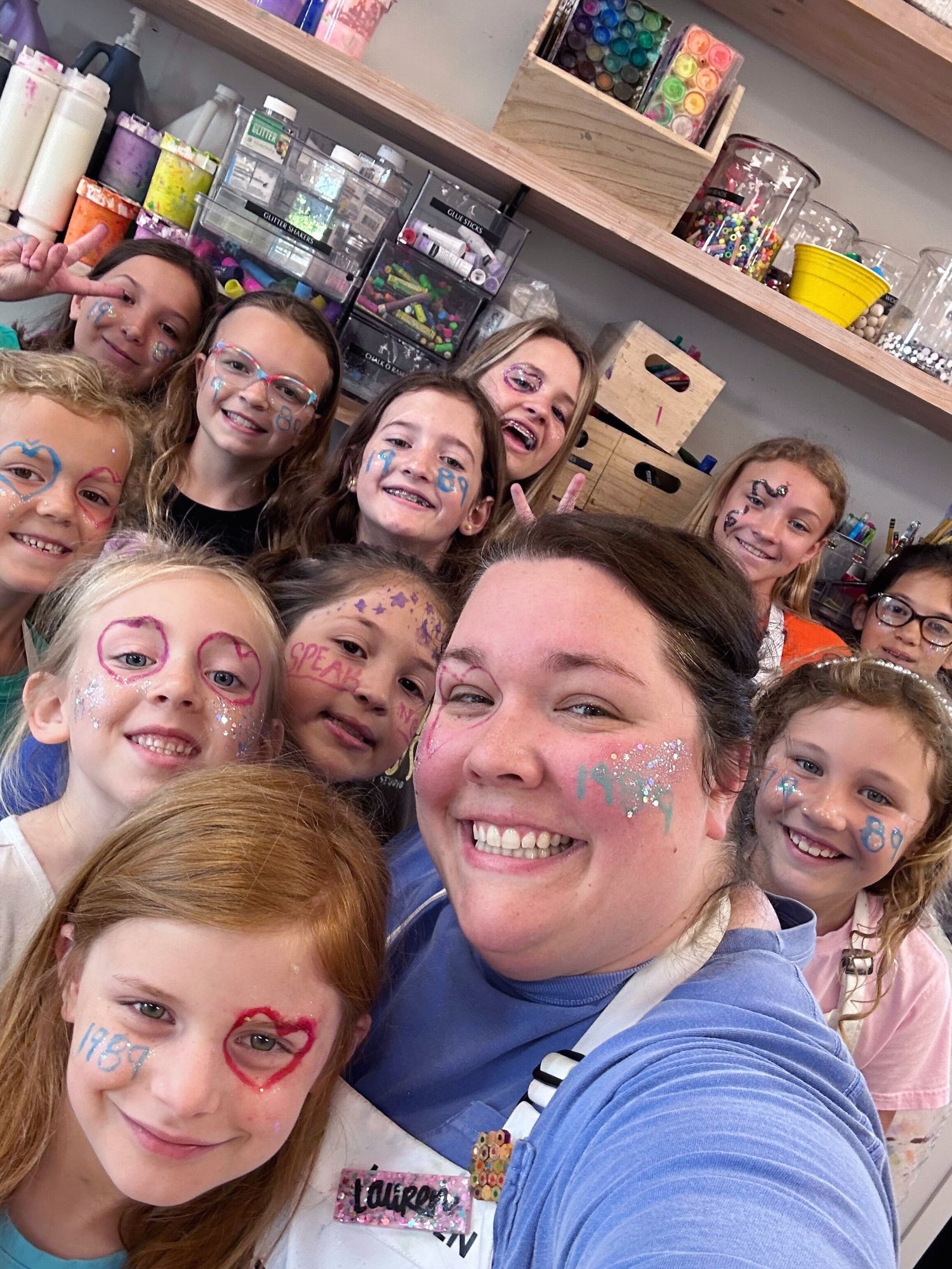 We are a diverse group of sparkly women with backgrounds in elementary education, art education, fine arts, children's ministry, secondary education, special education, marketing, family ministry & bomb mothering. Each instructor is trained in process art teaching principles, art education best practices, art therapy ideas, & has a desire to make sure every single person feels seen, loved, & encouraged while at our studio.